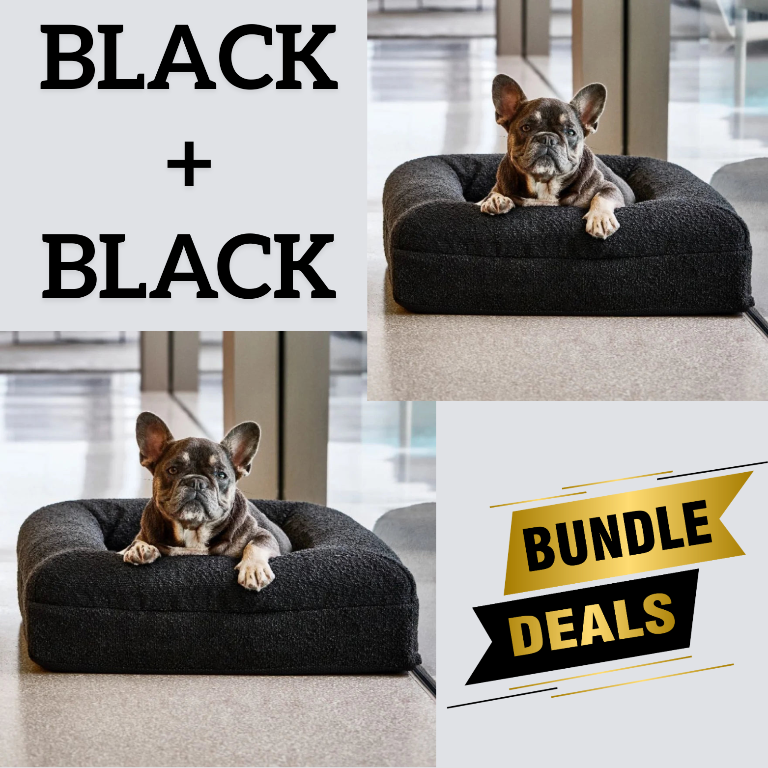 Bundle - 2 X Black Boucle Fabric & Orthopaedic Foam Dog Beds