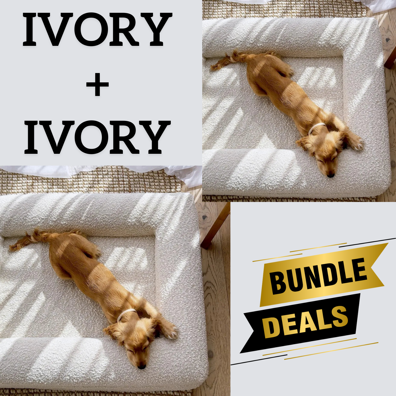 Bundle - 2 X Ivory Boucle Fabric & Orthopaedic Foam Dog Beds
